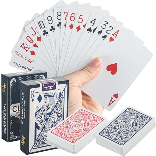 Klerbesh 2 Mazzi Rosso e Blu Carte da Gioco Professionali in Plastica Impermeabili, Carte da Poker per Texas Hold’em, Blackjack, Bridge e Scala 40, Mazzi Durevoli con (Rosso&blu)