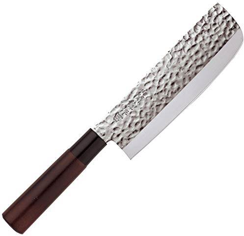 MITSUMOTO SAKARI Coltello Giapponese Forgiato Mano, 18 cm Coltello Cucina Nakiri, Coltelli da Cucina Professionali in Acciaio ad Alto Carbonio (Manico in Palissandro e Scatola di Legno Boutique)