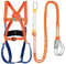 Set composto da imbracatura di sicurezza in dimensione universale e smorzatore con cordino a Y secondo gli standard normativi EN361 e EN354.